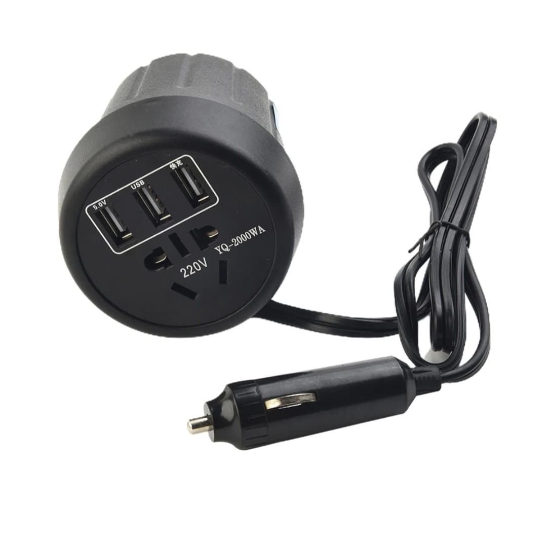 محول ولاعة سيارة متعدد الاستخدام – 3 منافذ USB + مقبس 220 فولت