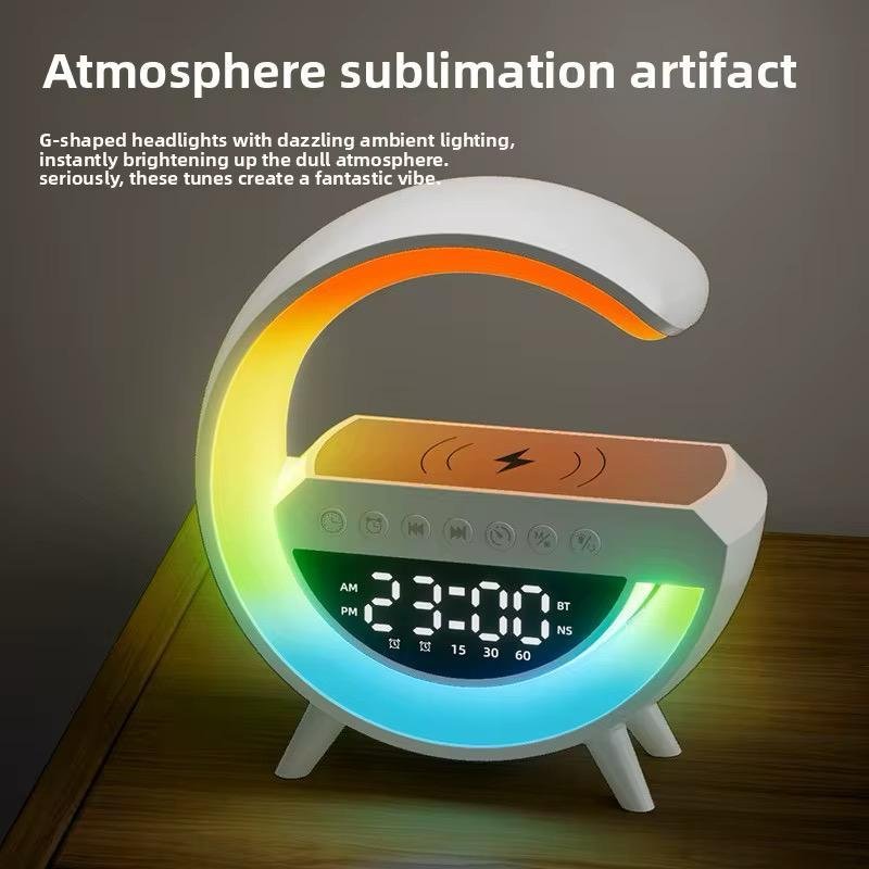 ساعة منبه ديجيتال LED متعددة الوظائف بإضاءة محيطية وشاحن لاسلكي – تصميم G Shape